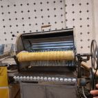 Alle die sich trauten durften unter der professionellen Aufsicht und mit der Hilfe von Thomas eine Schicht auftragen. Schicht um Schicht entstand so der fertige Baumkuchen. Zum Schluss wurde dieser noch mit Aprikosenkonfitüre eingepinselt, damit er schön frisch bleibt. Auf die Schokoladenschicht wurde an diesem Tag verzichtet, da der Baumkuchen relativ schnell von der Rolle geholt wurde, sodass alle eine eigenes Stück mit nach Hause nehmen durften.
